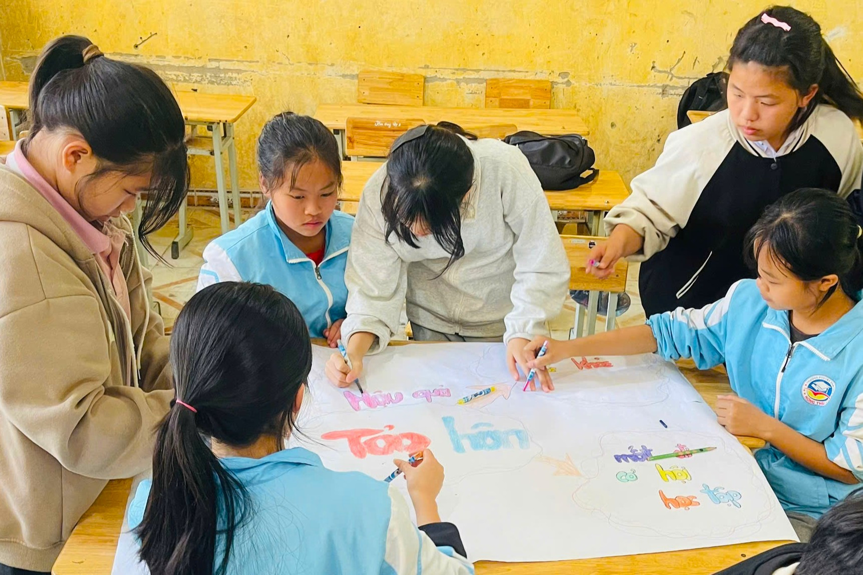 Câu lạc bộ tuyên truyền chống tảo hôn do cô Kim Ngân sáng lập tổ chức nhiều hoạt động để học sinh tham gia, tiếp cận kiến thức và hiểu biết về tác hại của tảo hôn. Ảnh: NVCC