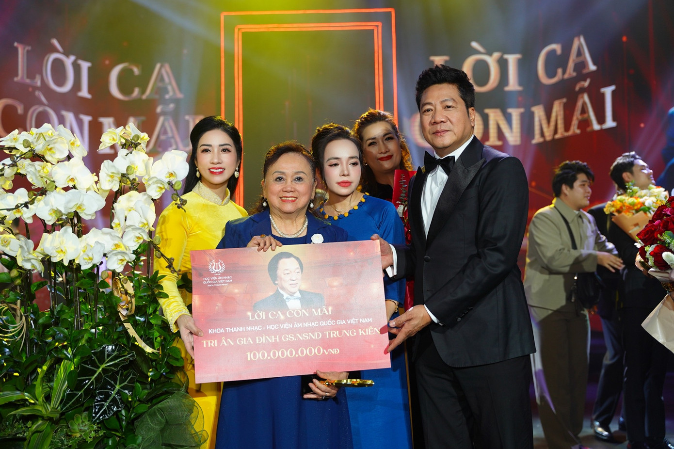 Mới đây, tại phòng Hòa nhạc Lớn, Học viện Âm nhạc Quốc gia Việt Nam, đã diễn ra đêm nghệ thuật đặc biệt Lời ca còn mãi. Đây là món quà 20/11 sớm mà các thế hệ học trò đã thực hiện nhằm tri ân và tôn vinh cố GS. NSND Trung Kiên - cây đại thụ của nền thanh nhạc Việt Nam.