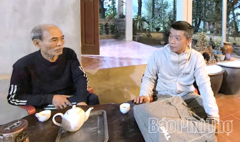 Lãnh đạo xã Thịnh Minh (bên phải) nắm bắt tâm tư, tuyên truyền vận động người dân xóm Tân Thành giải phóng mặt bằng đường 445