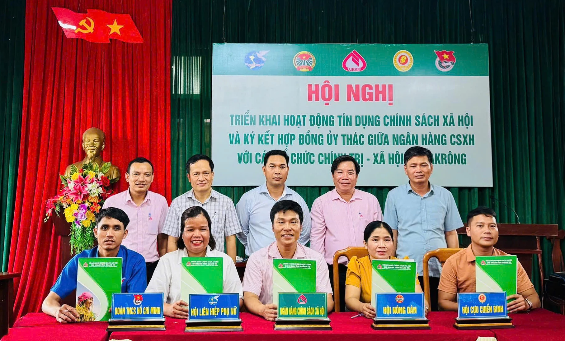 Lễ ký kết hợp đồng ủy thác giữa Ngân hàng Chính sách xã hội Đakrông với các tổ chức chính trị - xã hội xã Đakrông nhằm triển khai tín dụng chính sách - Ảnh: N.P