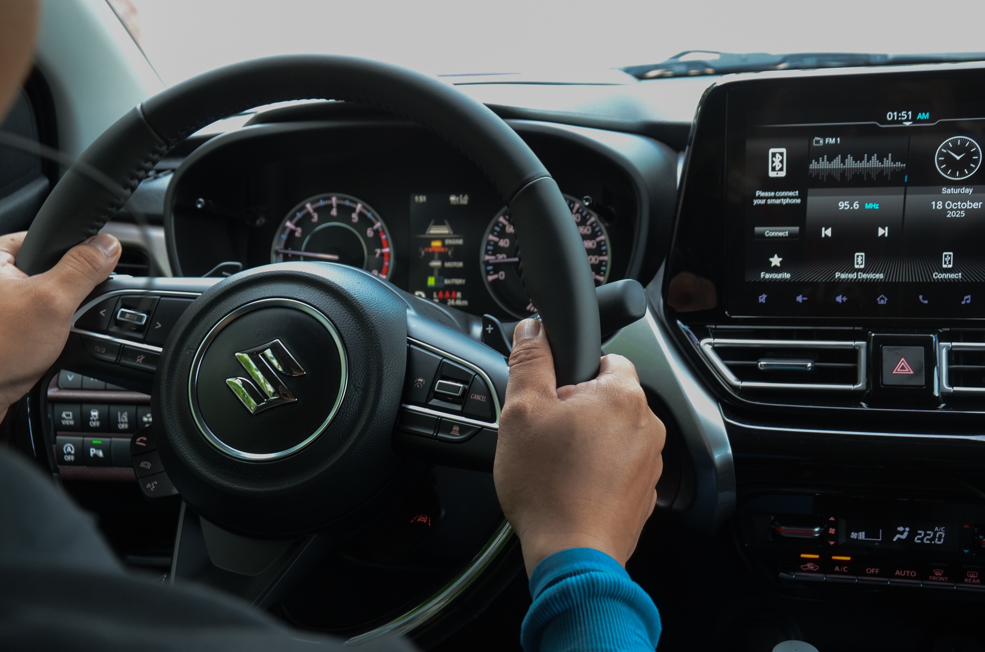 Cầm lái Suzuki Fronx nhẹ nhàng nhờ kích thước nhỏ gọn, bán kính quay vòng nhỏ và sự trợ giúp của motor điện. Ảnh: Phúc Hậu.