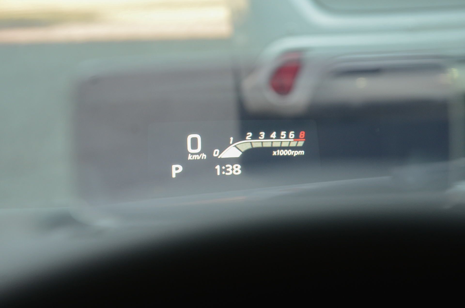 Khoang lái của Suzuki Fronx sở hữu thiết kế đơn giản nhưng khá hiện đại. Màn hình HUD sẽ tự động bật lên khi khởi động xe, cung cấp hình ảnh sắc nét, dễ quan sát. Người lái có thể chủ động đóng mở HUD thông qua cụm nút bấm trên táp-lô, cũng như điều chỉnh độ sáng và góc nghiêng của trang bị này cho phù hợp.