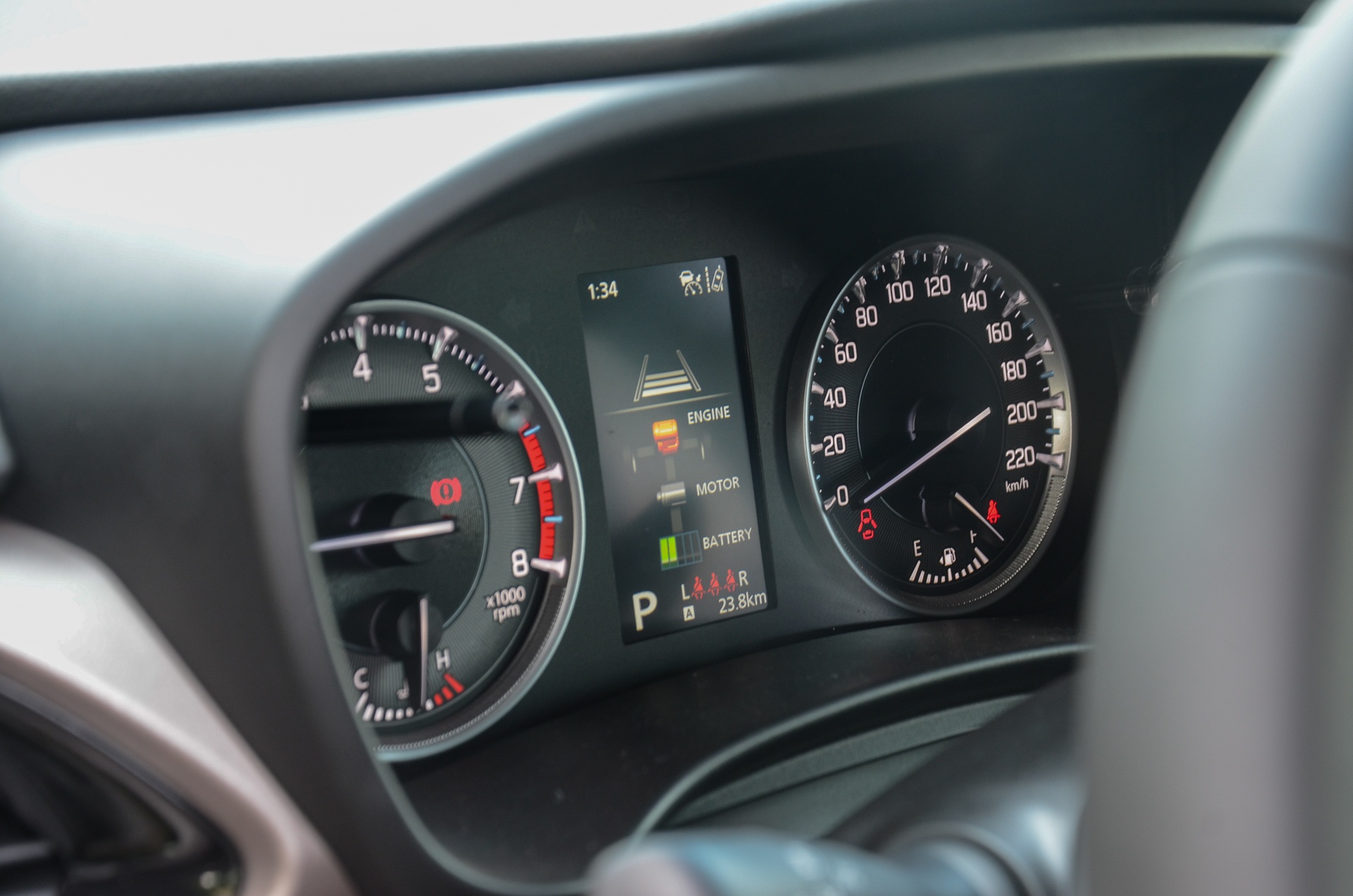 Nằm sau vô lăng 3 chấu là bảng đồng hồ kỹ thuật số gồm 2 màn hình analog và một màn hình điện tử kẹp giữa. Xe cũng có một màn hình giải trí trung tâm kích thước 9 inch.