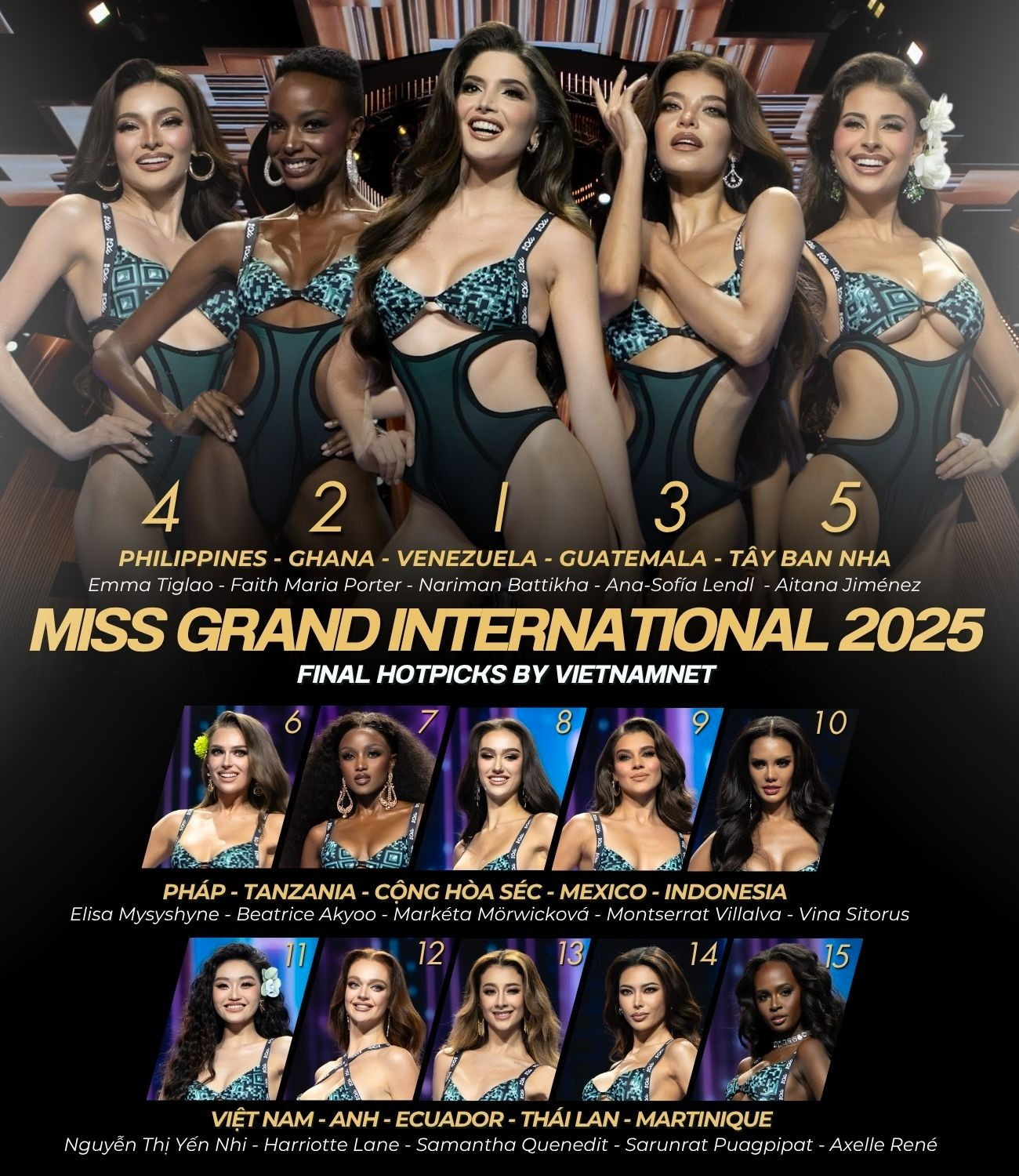 Dự đoán kết quả Miss Grand International (Hoa hậu Hòa bình Quốc tế) 2025 của VietNamNet.