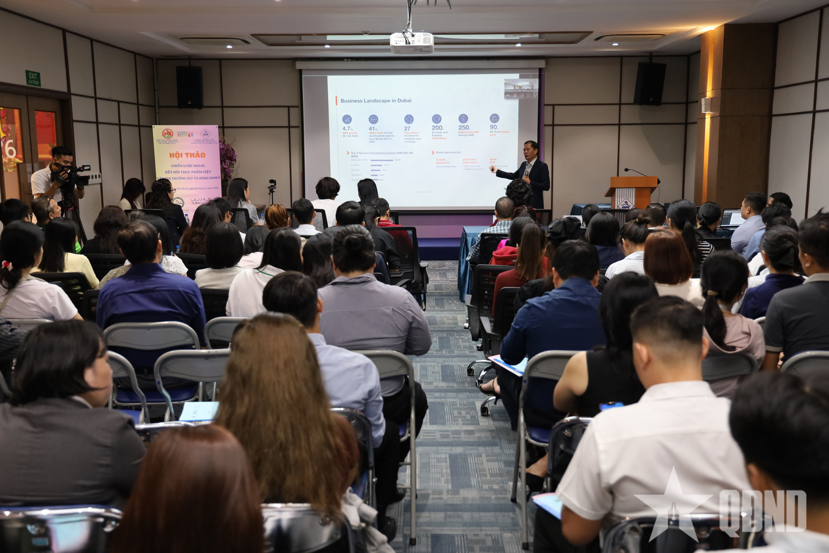 Phát biểu khai mạc, bà Hồ Thị Quyên, Phó giám đốc ITPC cho biết, trong bối cảnh hội nhập kinh tế quốc tế ngày càng sâu rộng, thị trường Halal (sản phẩm được sản xuất hoặc thực phẩm được chế biến theo các quy tắc ăn uống của đạo Hồi) đang nổi lên như một lĩnh vực có quy mô hàng nghìn tỷ USD, tập trung tại khu vực Hội đồng Hợp tác Vùng Vịnh (GCC) gồm 6 quốc gia: Saudi Arabia, UAE, Qatar, Kuwait, Bahrain và Oman, cùng khu vực Đông Nam Á.
