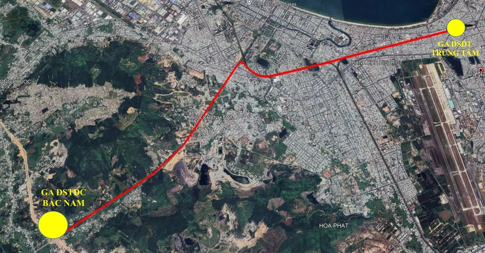 Hướng tuyến ĐSĐT nối từ ga đường sắt cao tốc Bắc - Nam về ga ĐSĐT trung tâm TP Đà Nẵng. Ảnh: SXD