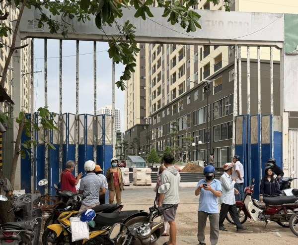 Nhiều người tụ tập trước công trình dự án nhà ở xã hội để “tranh suất” mua.