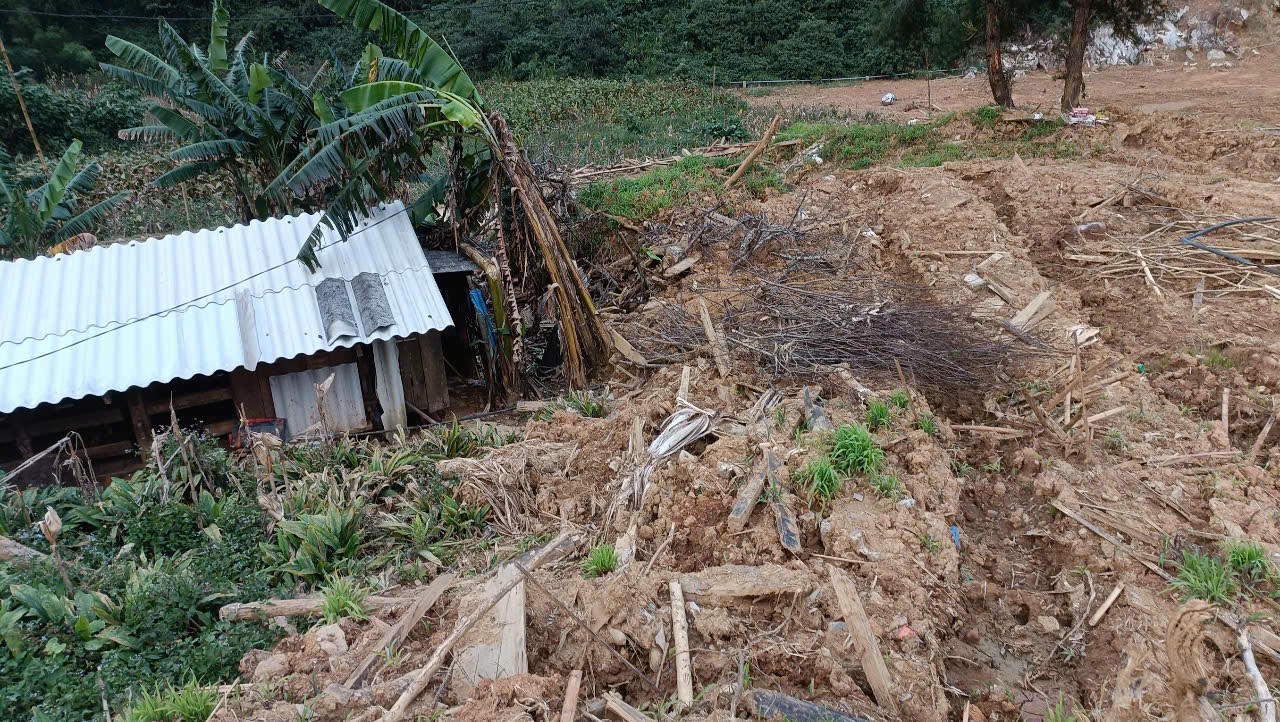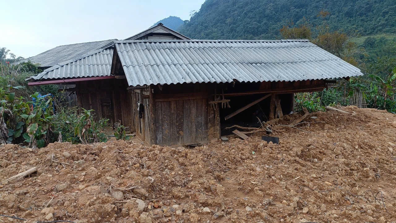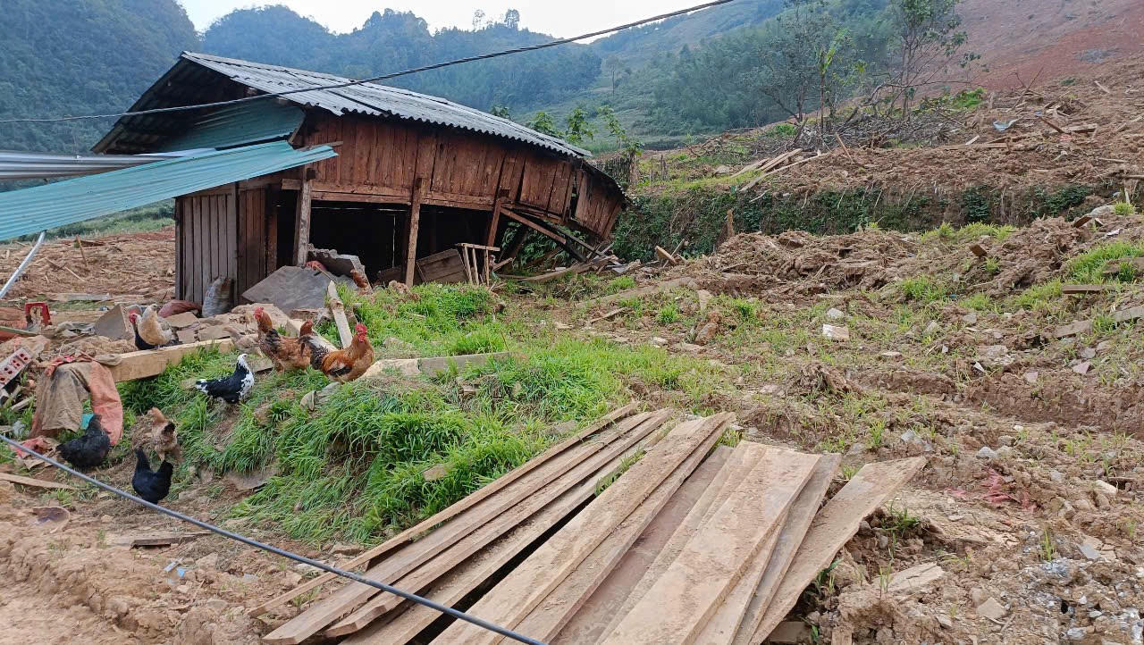 Căn nhà gần như bị hư hỏng hoàn toàn bởi cơn sạt lở sau trận bão lũ
