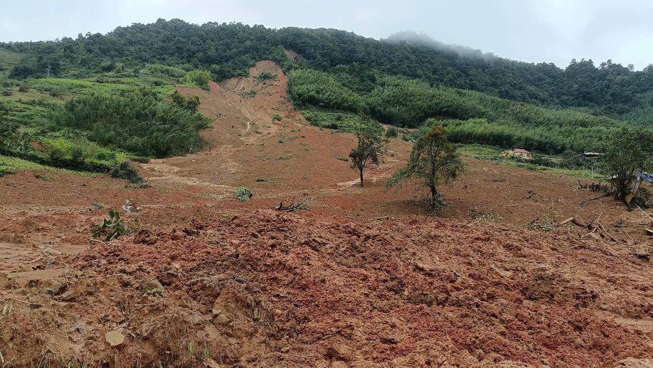 Vết sạt trượt từ sườn núi tại xã Ca Thành