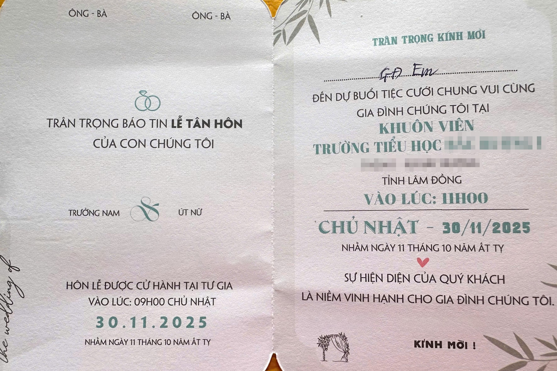 Thiệp mời đám cưới tại sân trường ở xã B.