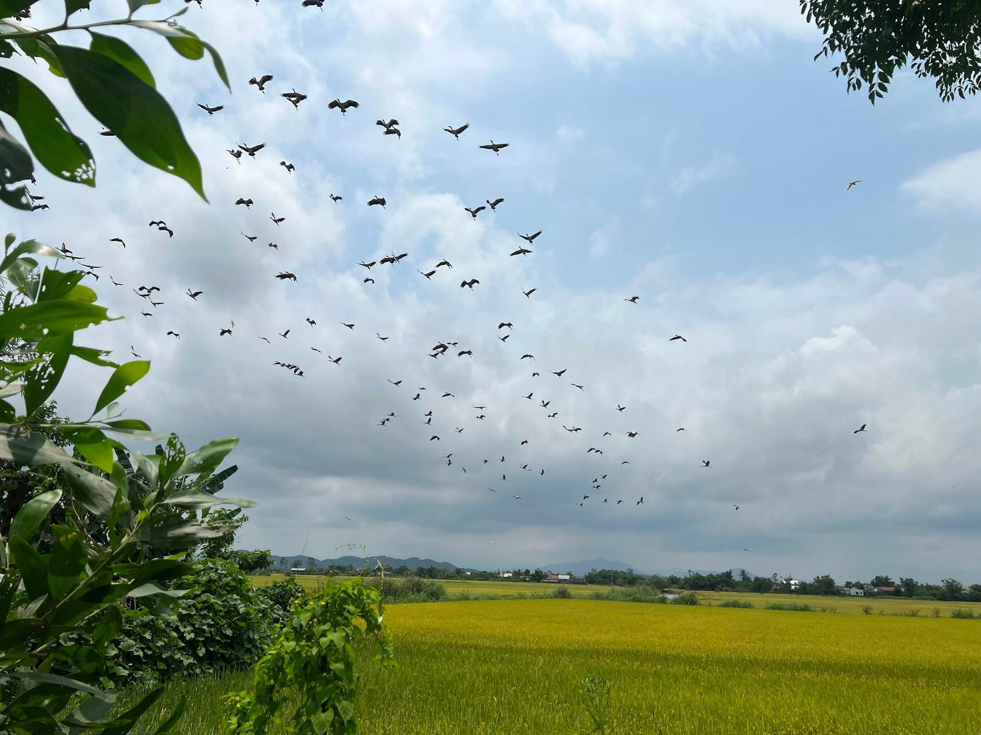 Người dân địa phương cho biết, đã lâu rồi họ mới lại thấy một đàn chim đông và đẹp đến vậy. “Nhìn cảnh này thấy quê mình yên bình và đáng sống hơn hẳn”, một nông dân chia sẻ.
