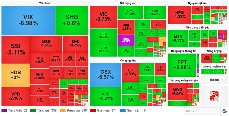 Ở chiều ngược lại, các mã tác động tiêu cực làm giảm 14,34 điểm của VN-Index gồm: VIC, LBP, VPB, TCB, MBB, VIX, VPL, GEX, VRE, HPG.