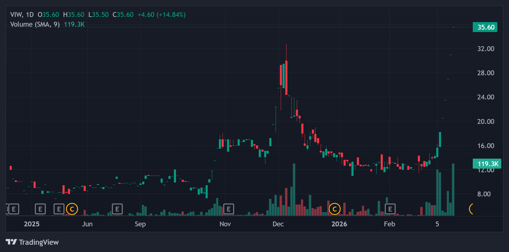 Thị giá cổ phiếu VIW tăng 2,5 lần từ đầu tháng 3. Ảnh: TradingView.