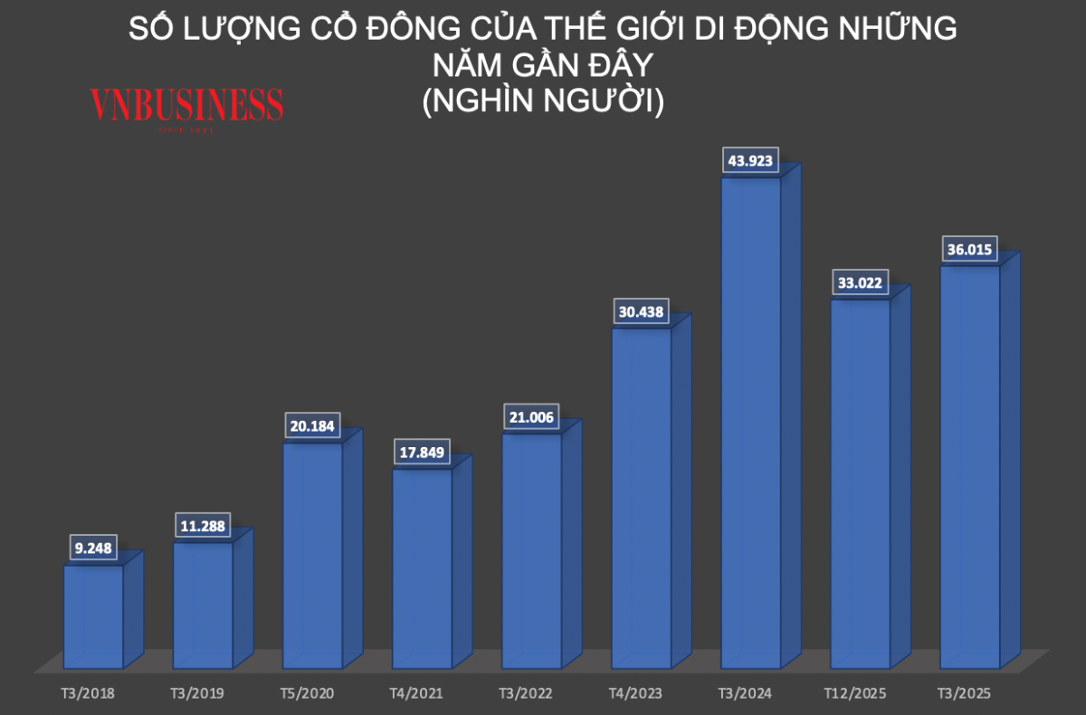 Số lượng cổ đông của Thế giới Di động những năm qua.