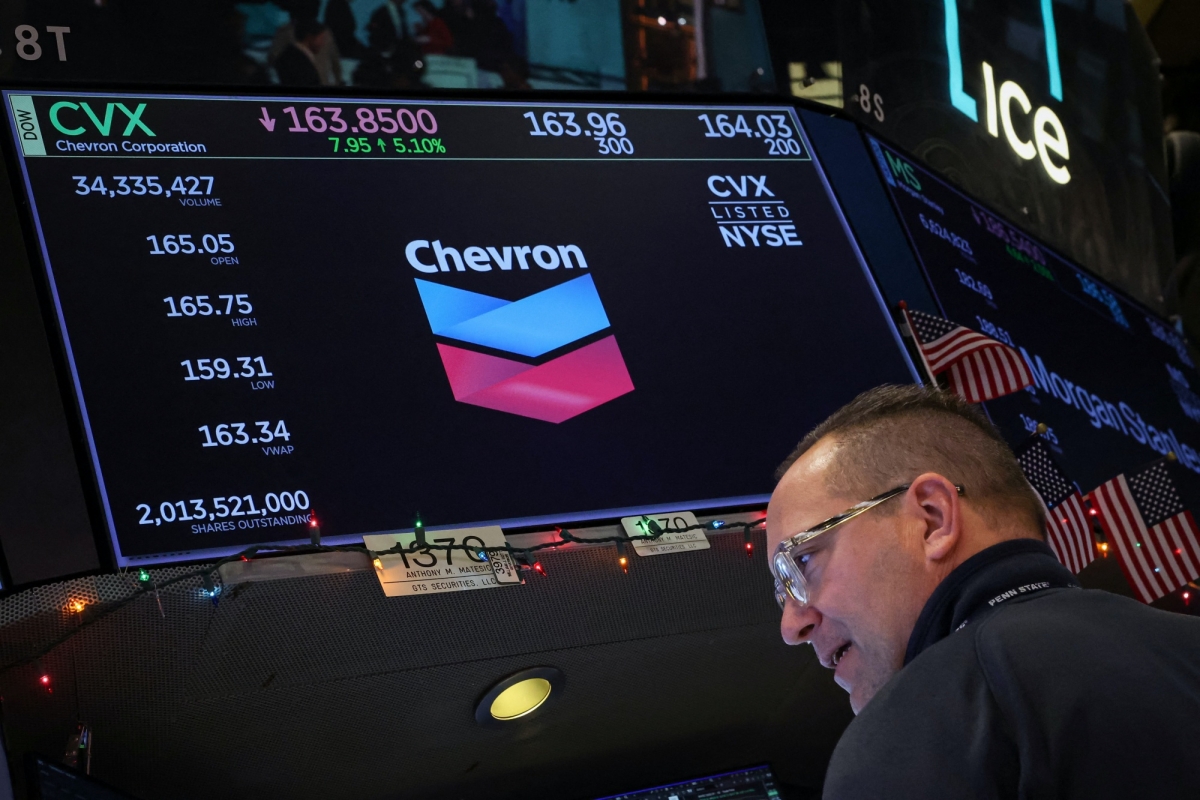 Cổ phiếu của Chevron – tập đoàn dầu khí Mỹ duy nhất hiện vẫn hoạt động và xuất khẩu dầu từ Venezuela – có thời điểm tăng tới 10%, trước khi ổn định quanh mức tăng khoảng 5% trong suốt buổi sáng. Tính đến đầu giờ chiều theo giờ miền Đông nước Mỹ, Chevron là cổ phiếu có diễn biến tích cực nhất trong chỉ số Dow Jones gồm 30 mã.