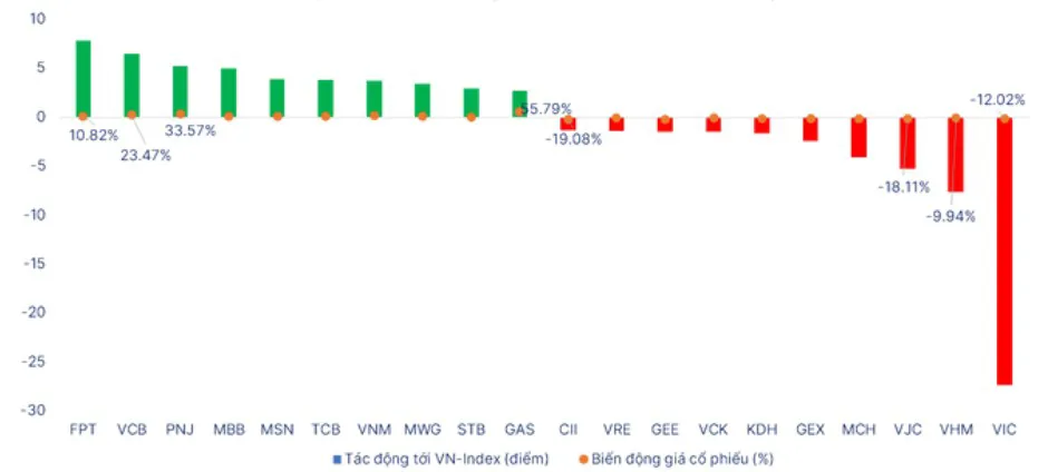 TOP cổ phiếu ảnh hưởng nhất đến VN-Index trong tháng 1/2026