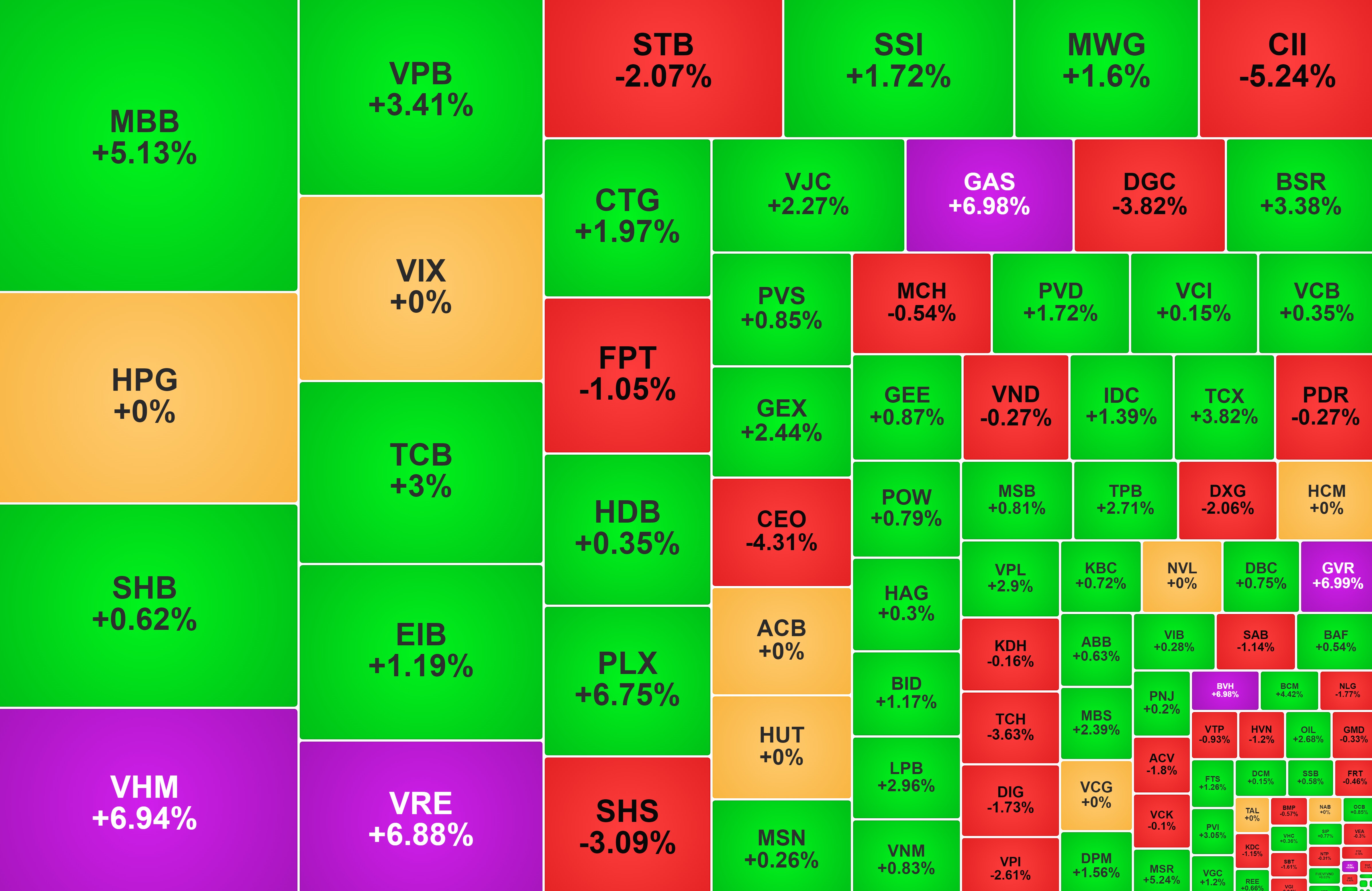 Sự phục hồi của nhóm ngân hàng và chứng khoán cũng có tác động tích cực. Tại nhóm ngân hàng, các mã tăng tốt là VPB +3,4%, MBB +5,1%, TCB +3%, TPB +2,7%, LPB +3%, CTG +2%. Nhóm chứng khoán có TCX +3,8%, SSI +1,7%, MBS +2,4%, DSE +2,3%...