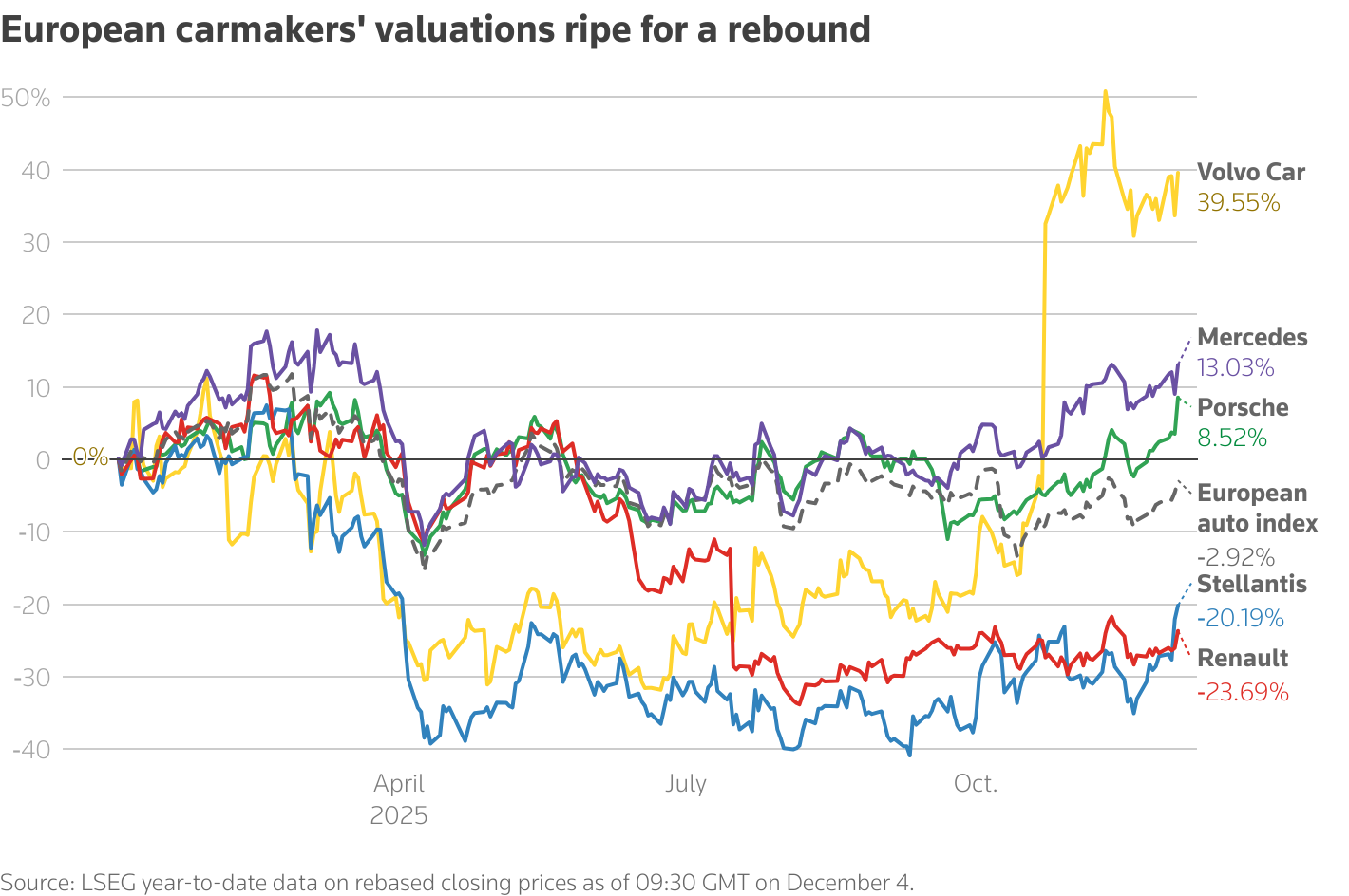Cụ thể, cổ phiếu Porsche đã tăng hơn 5%, cổ phiếu Mercedes-Benz và Volvo tăng gần 4%, trong khi Renault tăng 3,3%. Cổ phiếu Stellantis, niêm yết tại Milan và Paris, tăng khoảng 2,7% sau khi đã bật gần 8% trong phiên trước đó.