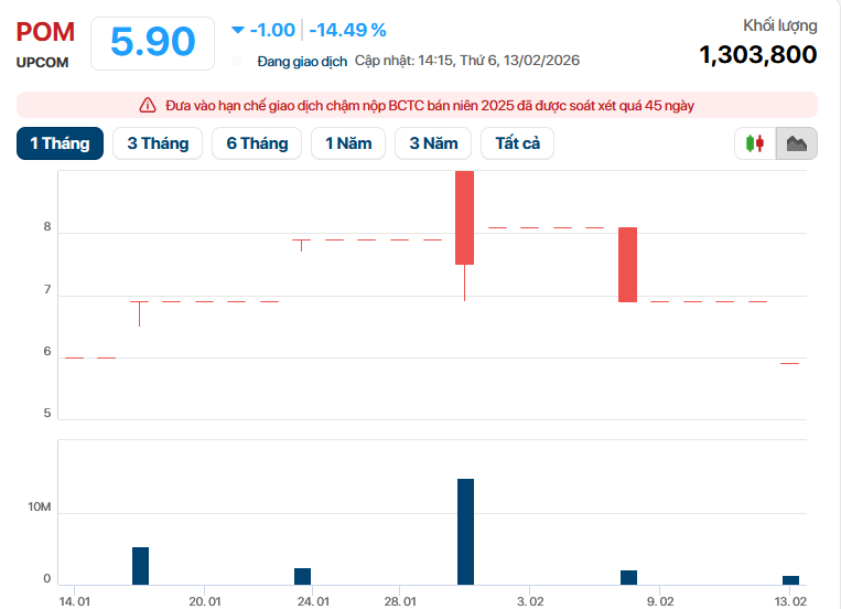 Trước đó, cổ phiếu POM gây chú ý với thị trường với đà tăng trưởng đột biến, bất chấp cổ phiếu này bị hạn chế giao dịch (chỉ được giao dịch phiên thứ Sáu hàng tuần) do chậm nộp báo cáo tài chính kiểm toán năm 2023-2024 và âm vốn lưu động, đã hủy niêm yết trên HoSE và chuyển sang UPCoM.