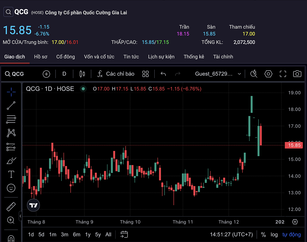 Cổ phiếu QCG giảm sàn trở lại trong phiên 19/12.