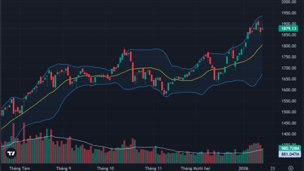Điều này góp phần làm giảm lo lắng về tình trạng giằng co của VN-Index quanh mốc 1900 điểm. Hôm nay chỉ số lại một lần nữa thất bại trong nỗ lực chinh phục đỉnh này. Mốc 1900 điểm chỉ là con số tròn và hoàn toàn không phản ánh đúng trạng thái giá của đại đa số cổ phiếu thành phần. Hiện tượng giằng co 7 phiên trở lại đây với thanh khoản lớn không hẳn là lực cản đến từ phía cung tổng thể tác động lên chỉ số mà là lực cung từ các trụ cụ thể. Ví dụ VCB sau nhịp tăng 8 phiên tới 33% thì chững lại là bình thường. GAS trong 9 phiên đầu tháng 1/2026 cũng đã tăng gần 48%. Hay như VIC, 7 phiên điều chỉnh gần nhất đã trả lại 14,5%, VHM giảm 20% thì hôm nay phục hồi là bình thường.