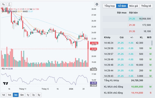 Theo dữ liệu lịch sử giá, cổ phiếu VCG đã giảm liên tục kể từ giai đoạn tháng 9/2025 đến nay. Cụ thể, thời điểm trung tuần tháng 9/2025, giá VCG ở vùng 28.000 đồng/ đơn vị. Tuy nhiên, đến 26/1 chỉ còn 21.250 đồng/ đơn vị.