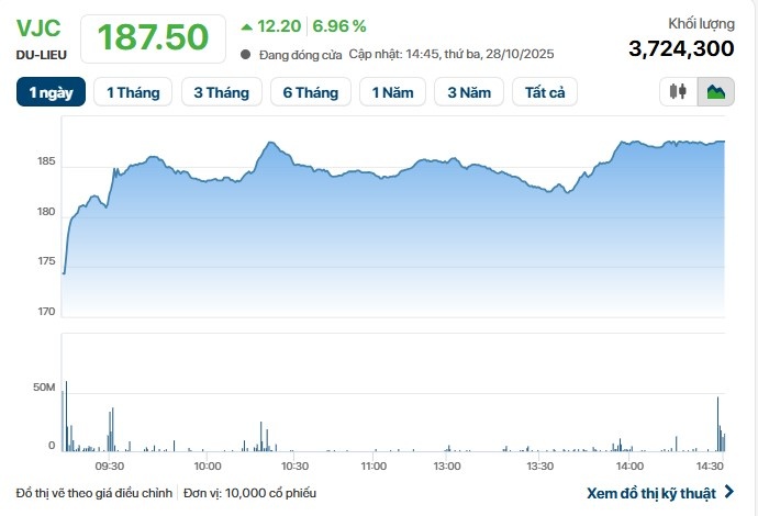 Cổ phiếu VJC lập đỉnh trong phiên 28/10.