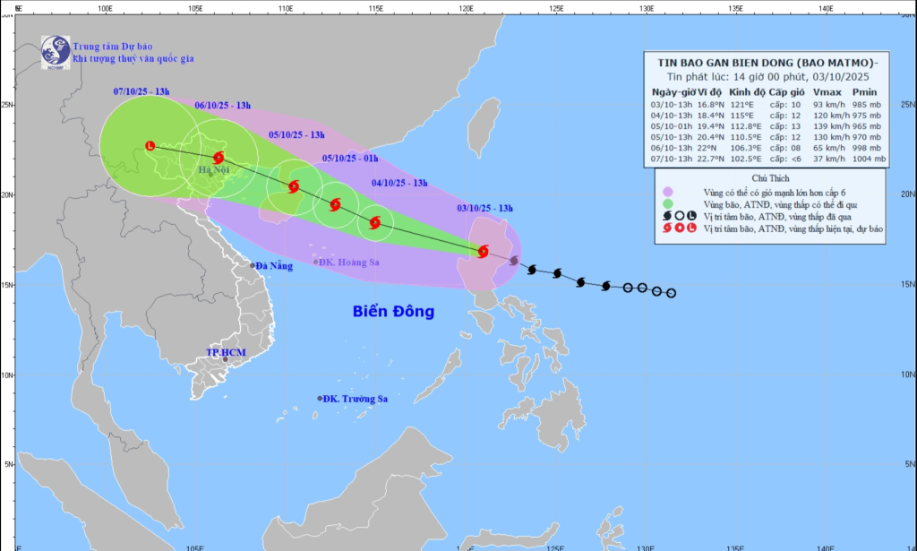 Ông Vi Quang Tuyền: Sau cơn lũ lịch sử do hoàn lưu bão số 10, hiện nay một cơn bão mới - bão số 11 có tên quốc tế là Matmo đang tiến gần Biển Đông. Theo tin mới nhất của Trung tâm Dự báo Khí tượng Thủy văn Quốc gia, hồi 7 giờ sáng ngày 03/10/2025, bão Matmo có sức gió mạnh cấp 9-10, giật cấp 13, đang hoạt động trên vùng biển phía Đông đảo Luzon (Philippines). Dự báo chiều tối 3/10, bão sẽ đi vào Biển Đông, có khả năng mạnh thêm lên cấp 11-12, giật cấp 14-15.