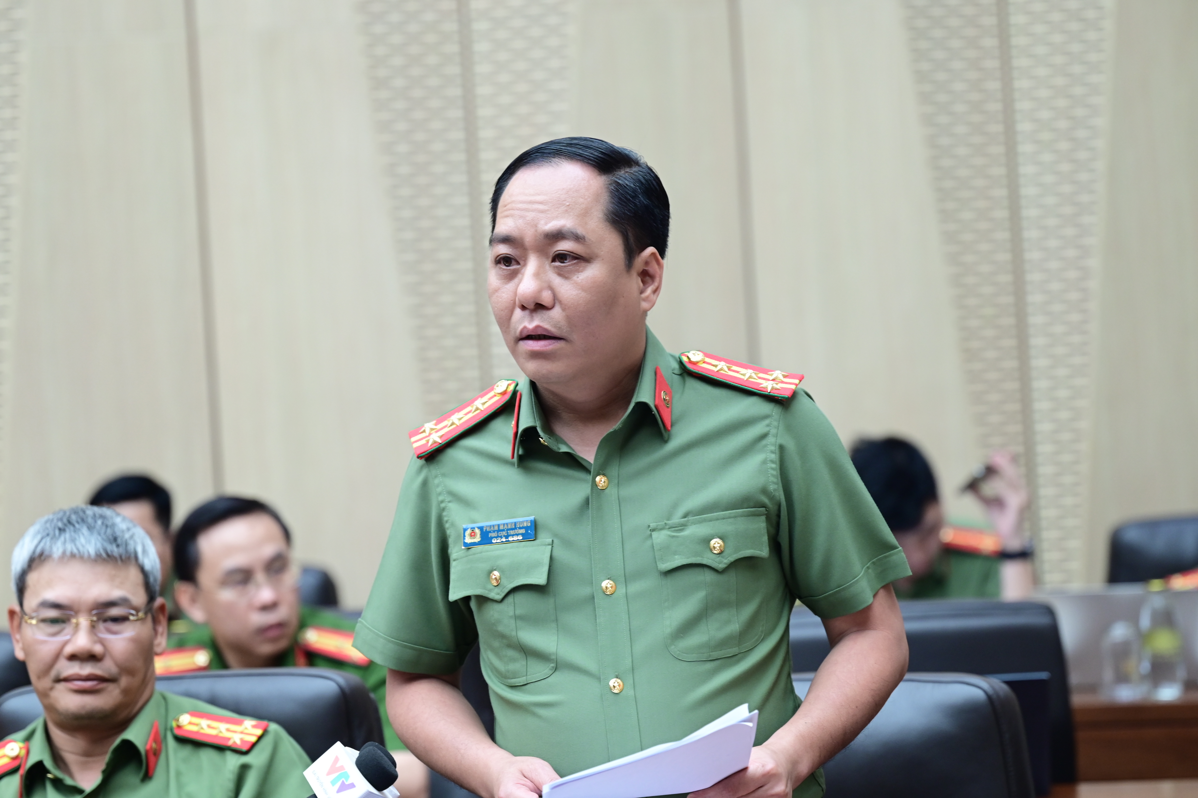 Đại tá Phạm Mạnh Hùng thông tin tại buổi họp báo. Ảnh: ĐỖ TRUNG