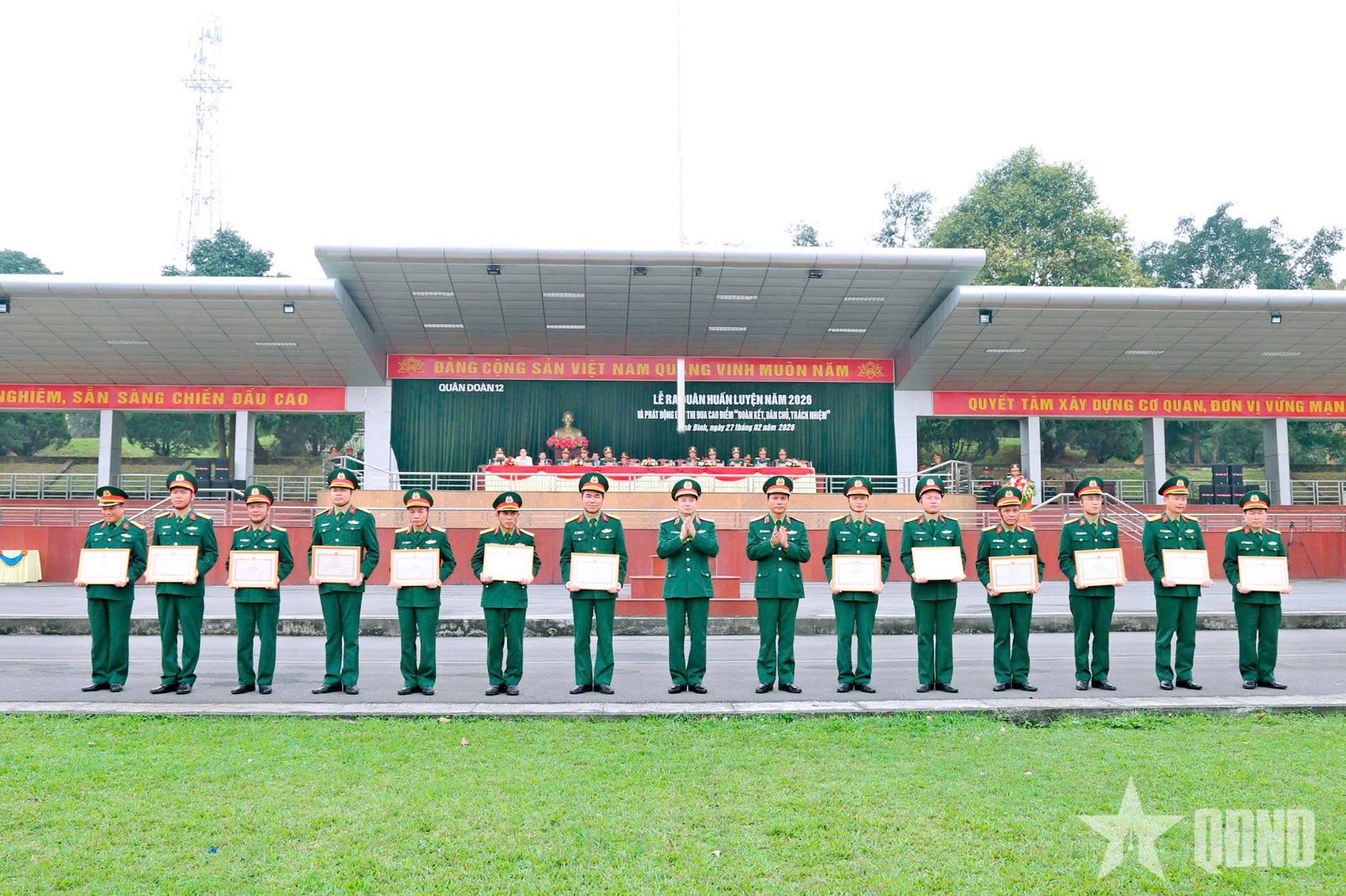 Tại lễ ra quân huấn luyện, cơ quan Quân đoàn 12 đã quán triệt các nội dung trọng tâm của công tác huấn luyện năm 2026; sơ kết đợt thi đua “Mừng Đảng quang vinh - Mừng Xuân thắng lợi”; phát động đợt thi đua cao điểm “Đoàn kết, dân chủ, trách nhiệm hoàn thành xuất sắc nhiệm vụ tham gia bầu cử đại biểu Quốc hội khóa XVI và đại biểu Hội đồng nhân dân các cấp nhiệm kỳ 2026-2031”; Phong trào thi đua “Dân vận khéo”, xây dựng “Đơn vị dân vận tốt” giai đoạn 2026-2030 và khởi động Tháng Thanh niên.
