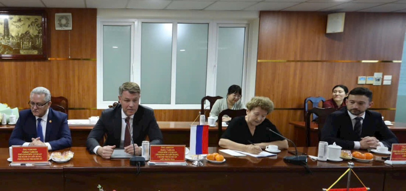 Tiếp Đoàn công tác Cơ quan Thi hành án Liên bang Nga có Phó cục trưởng Cục Quản lý THADS Trần Thị Phương Hoa, Trưởng THADS TPHCM Nguyễn Văn Hòa cùng các Phó trưởng THADS TPHCM và trưởng các phòng nghiệp vụ.