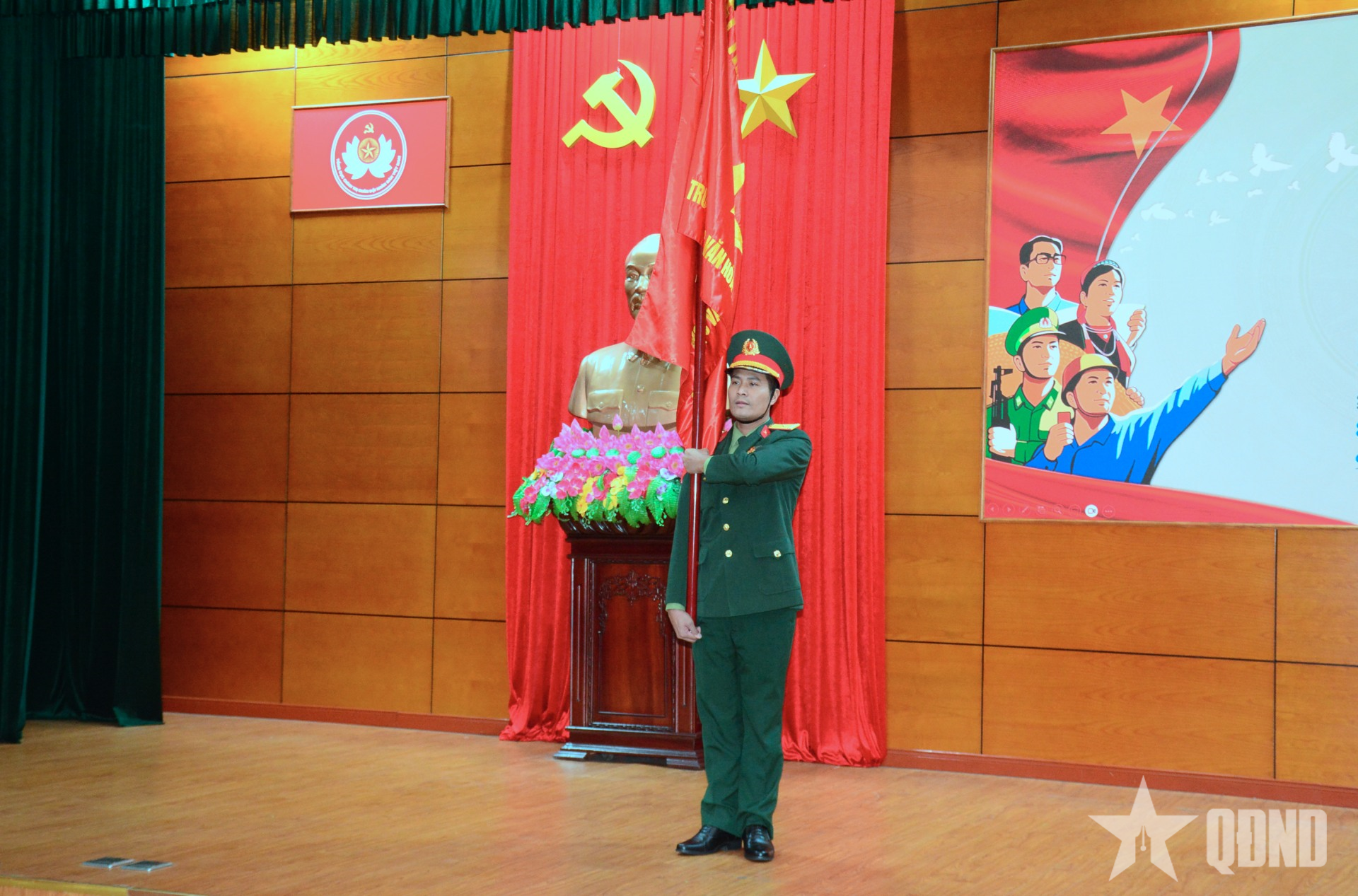 Thực hành dựng quân kỳ.