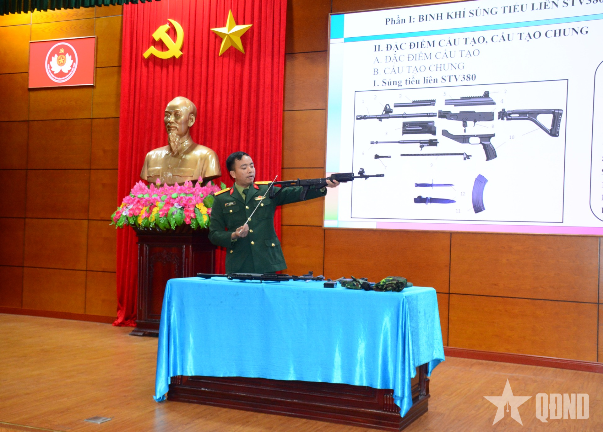 Giáo viên tập huấn cũng giới thiệu chi tiết các nội dung về binh khí, quy tắc và động tác bắn của 3 loại súng: STV-380, STV-215, STV-022, tập trung vào súng STV-380, là loại súng sẽ được đưa vào huấn luyện và kiểm tra bắn đạn thật đối với quân nhân chuyên nghiệp, công nhân viên chức quốc phòng năm 2026.