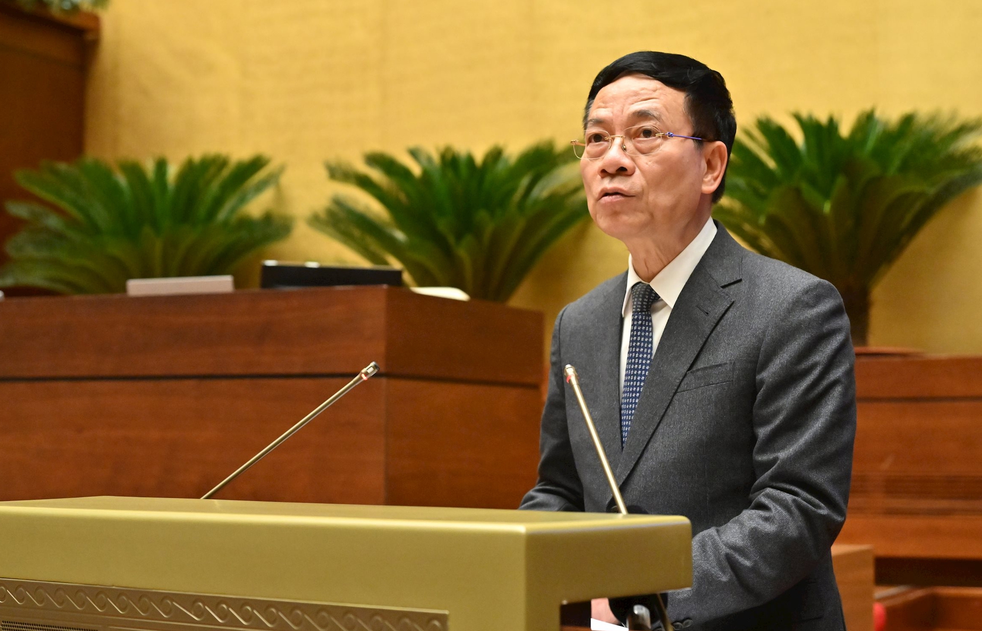 Bộ trưởng Bộ Khoa học và Công nghệ Nguyễn Mạnh Hùng trình bày tờ trình. Ảnh: Quang Khánh.