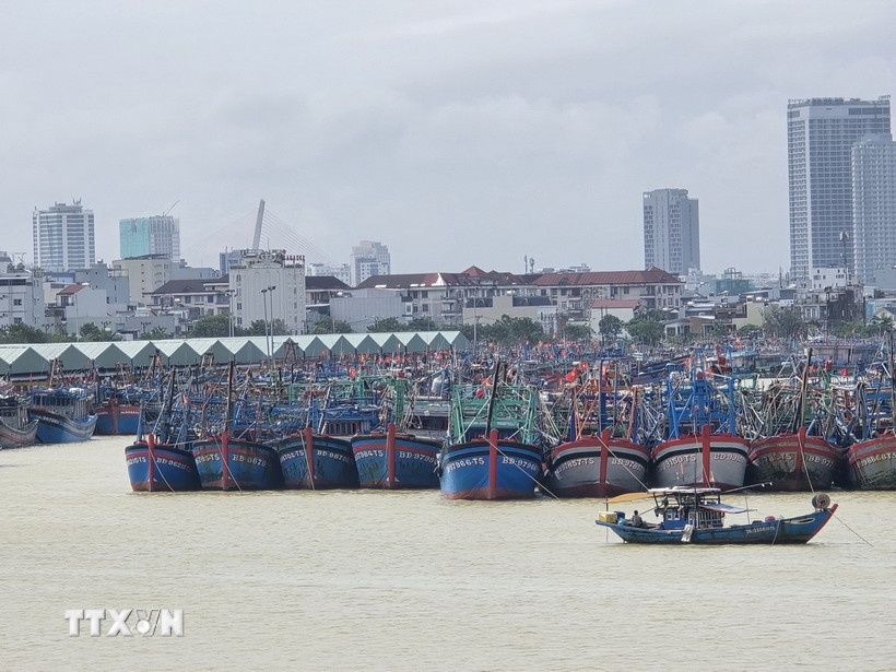 Tàu thuyền neo đậu tại âu thuyền Thọ Quang (phường Sơn Trà, thành phố Đà Nẵng) để tránh trú bão. Ảnh: Khoa Chương/TTXVN.