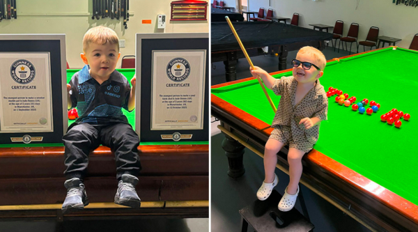Cơ thủ Jude Owens cùng 2 chứng nhận kỷ lục của mình.Ảnh: TGR.