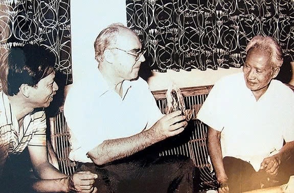Thủ tướng Phạm Văn Đồng trong một chuyến đến thăm các giàn khoan ven biển miền Bắc ở những năm 1975. Ảnh tư liệu.
