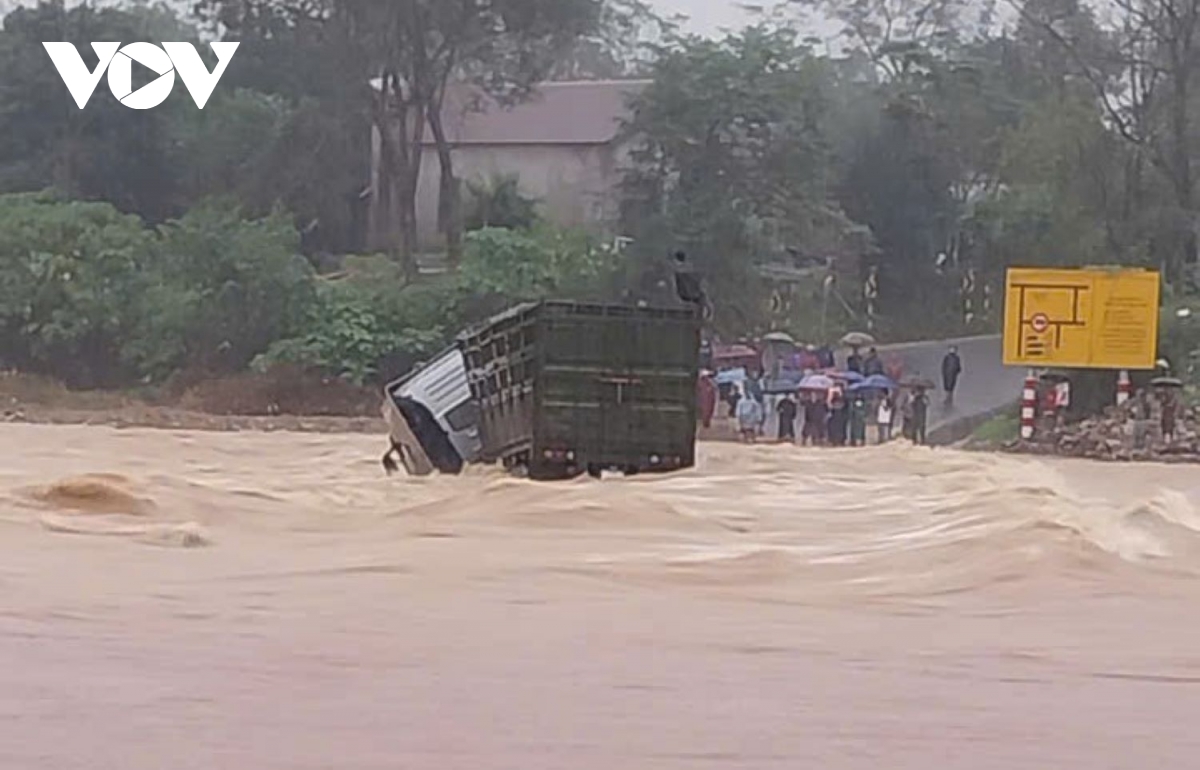 Khoảng 12h trưa nay, một xe container chưa rõ biển số đi từ cửa khẩu La Lay về Quốc lộ 9. Mặc dù rào chắn đã được dựng lên, tài xế vẫn tự ý mở rào để vượt qua cầu tràn A Rông Trên (ngã ba La Lay). Nước lũ từ thượng nguồn chảy xiết khiến xe bị cuốn trôi, lật xuống vực, tài xế trèo lên nóc cabin chờ cứu hộ nhưng sau đó bị nước lũ cuốn mất tích.
