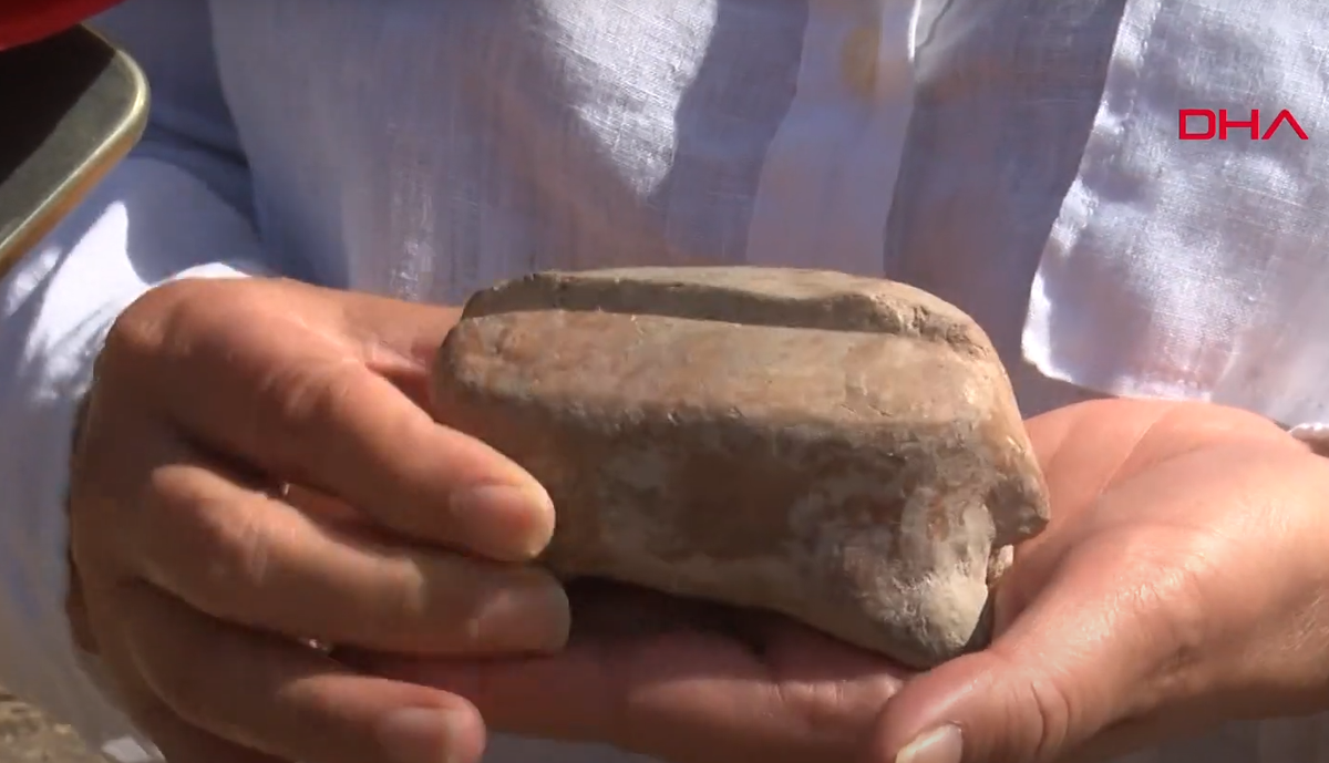 Các kỹ thuật thăm dò, phân tích khảo cổ học chuyên sâu cho thấy, đây là một công cụ làm bằng đất sét, ước tính có niên đại khoảng 7.700 năm tuổi. Ảnh: @Demirören Haber Ajansı.