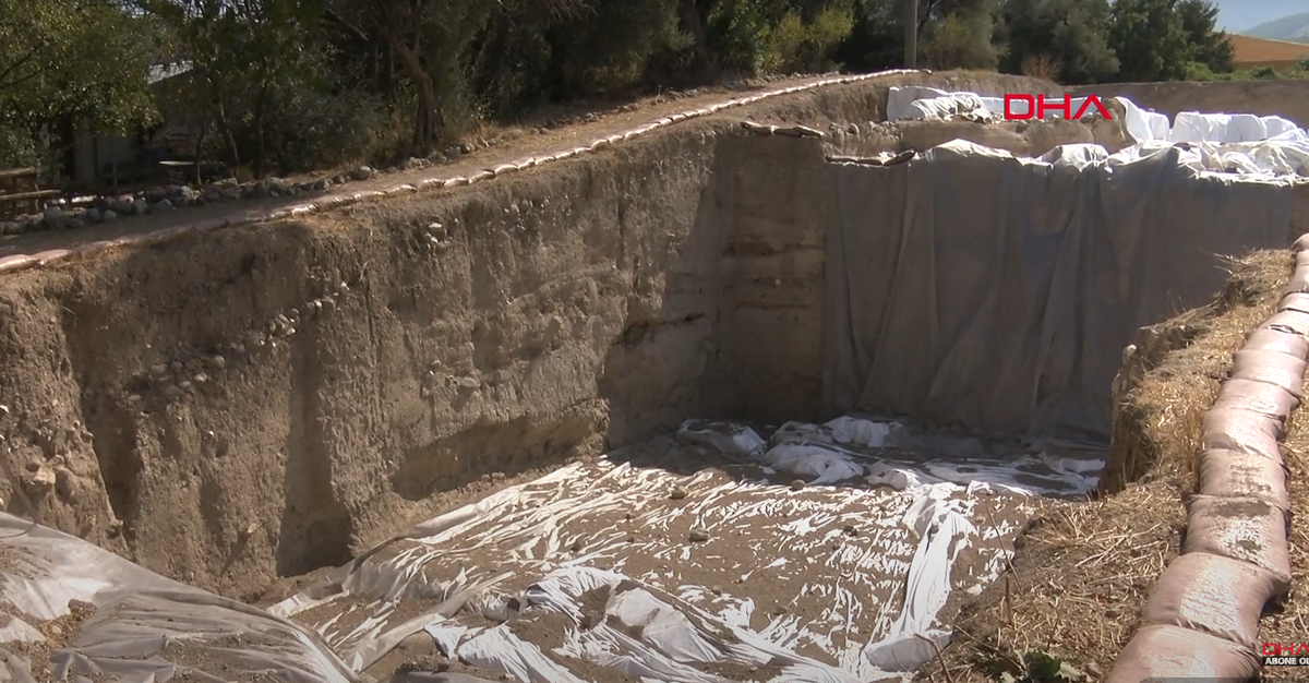 Trong quá trình khai quật khảo cổ tại Đồi Ulucak ở quận Kemalpaşa của Izmir, Thổ Nhĩ Kỳ, các chuyên gia đến từ trường Đại học Trakya bất ngờ tìm thấy một vật thể lạ. Ảnh: @Demirören Haber Ajansı.