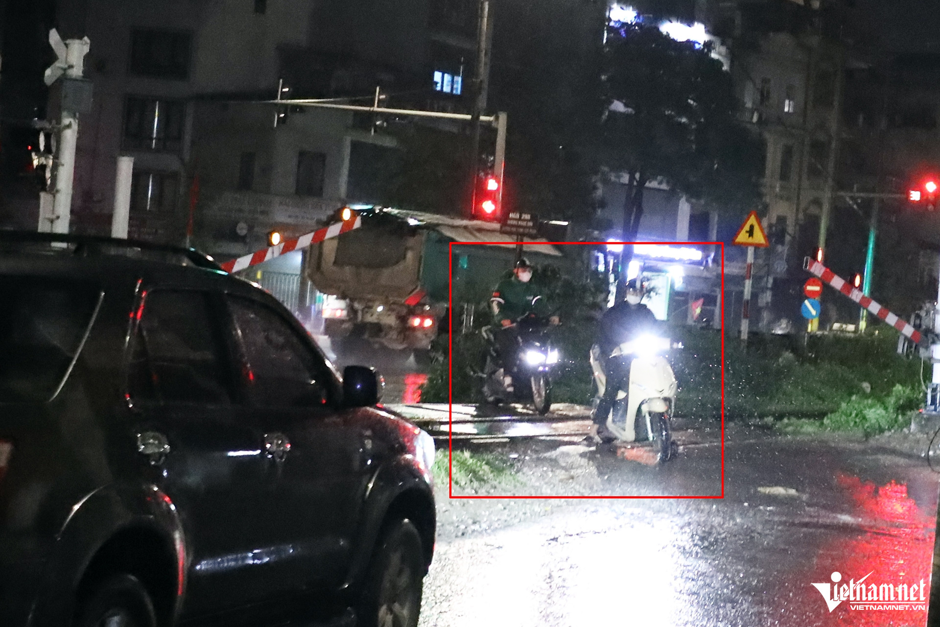Vào 22h30, tại nút giao giữa đường sắt và ngõ 298 Ngọc Hồi, dù được trang bị hệ thống cảnh báo, gác chắn tự động, nhưng nhiều người vẫn “phớt lờ”, bất chấp nguy hiểm để vượt qua.