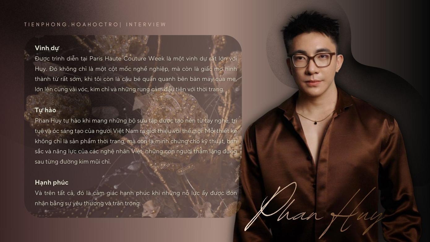 Phan Huy là tâm điểm chú ý trong cộng đồng thời trang Việt tuần qua khi là đại diện Việt Nam đầu tiên và duy nhất góp mặt trong lịch trình Paris Haute Couture Fashion Week Xuân Hè 2026. Phan Huy đồng thời cũng xác lập kỷ lục, trở thành NTK trẻ nhất lịch sử thế giới ra mắt BST trong khuôn khổ tuần lễ thời trang danh giá nhất hành tinh.