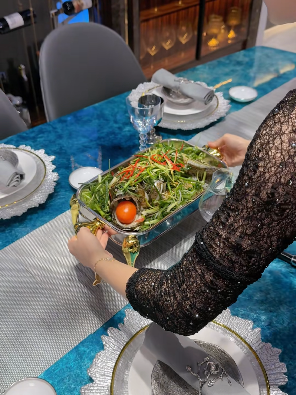 Giữa tháng 4, Phương Oanh tự tay chuẩn bị tiệc fine dining tại nhà. Bàn ăn sang trọng, đĩa và ly chạm khắc tinh tế khiến người xem trầm trồ. Món ăn trong bữa tiệc làm từ ốc vòi voi và cá mú. Nữ diễn viên chẻ mảnh đầu tỏi tây, hành lá, gừng và ớt sừng ngâm trong nước lạnh, sau đó hấp cá mú với cải chíp và nấm hương. Ốc vòi voi cũng được hấp chín, thái mỏng và xếp khéo léo trên đĩa có sẵn đá lạnh để giữ độ tươi giòn. Đây cũng là video nấu gần nhất của series Bếp nàng Ỉn, đã 6 tháng cô chưa cập nhật video mới.
