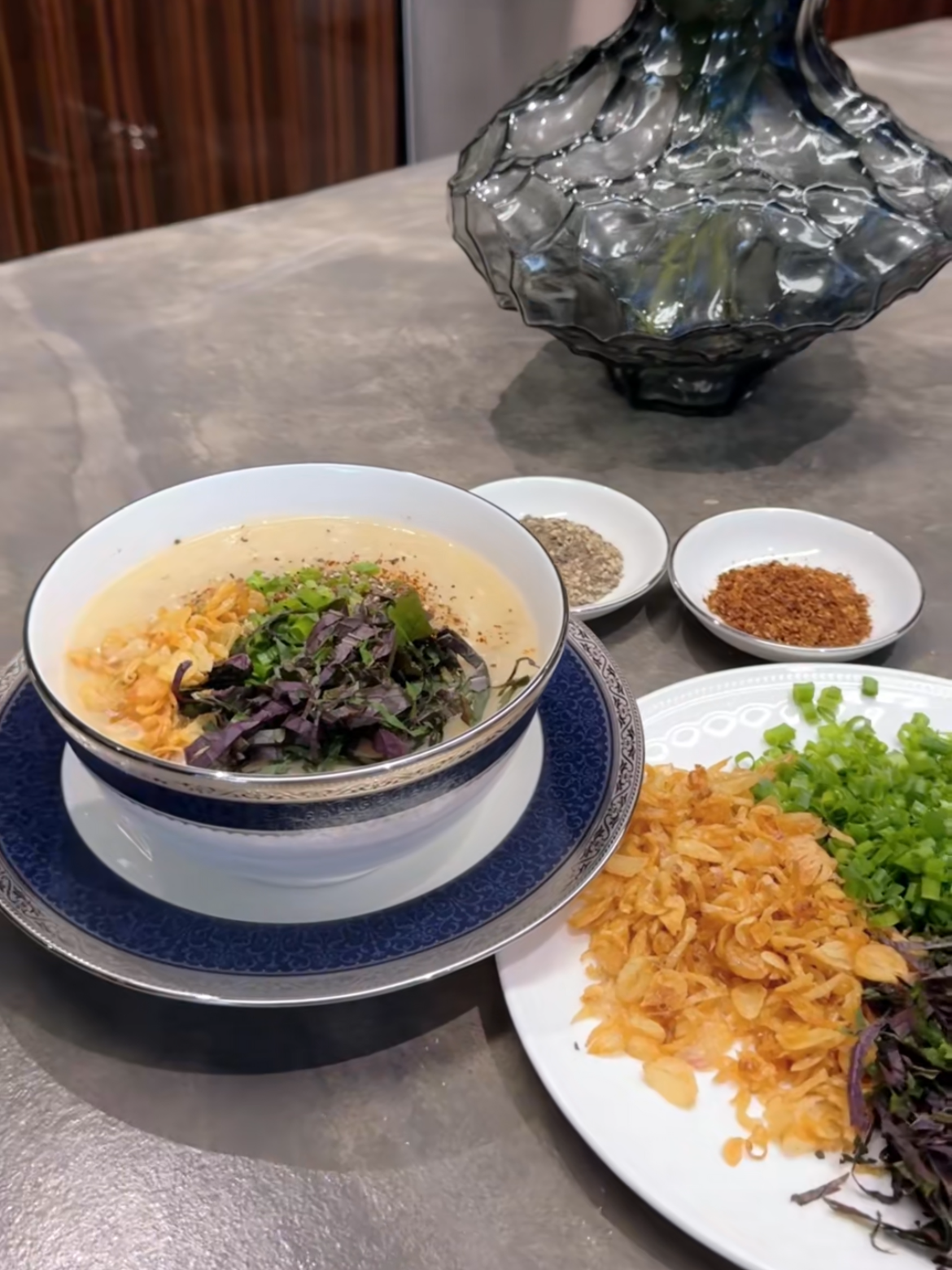 Trong thời gian mang thai, nữ chính phim Quỳnh búp bê vẫn thường xuyên vào bếp như một cách giải khuây. Cháo tôm hùm đỏ với nhiều công đoạn sơ chế phức tạp nhưng qua tay Phương Oanh đã thành món ăn ngon mắt, ngon miệng. Theo chia sẻ, cô thích ăn món cháo này trong thai kỳ vì nhiều chất dinh dưỡng.