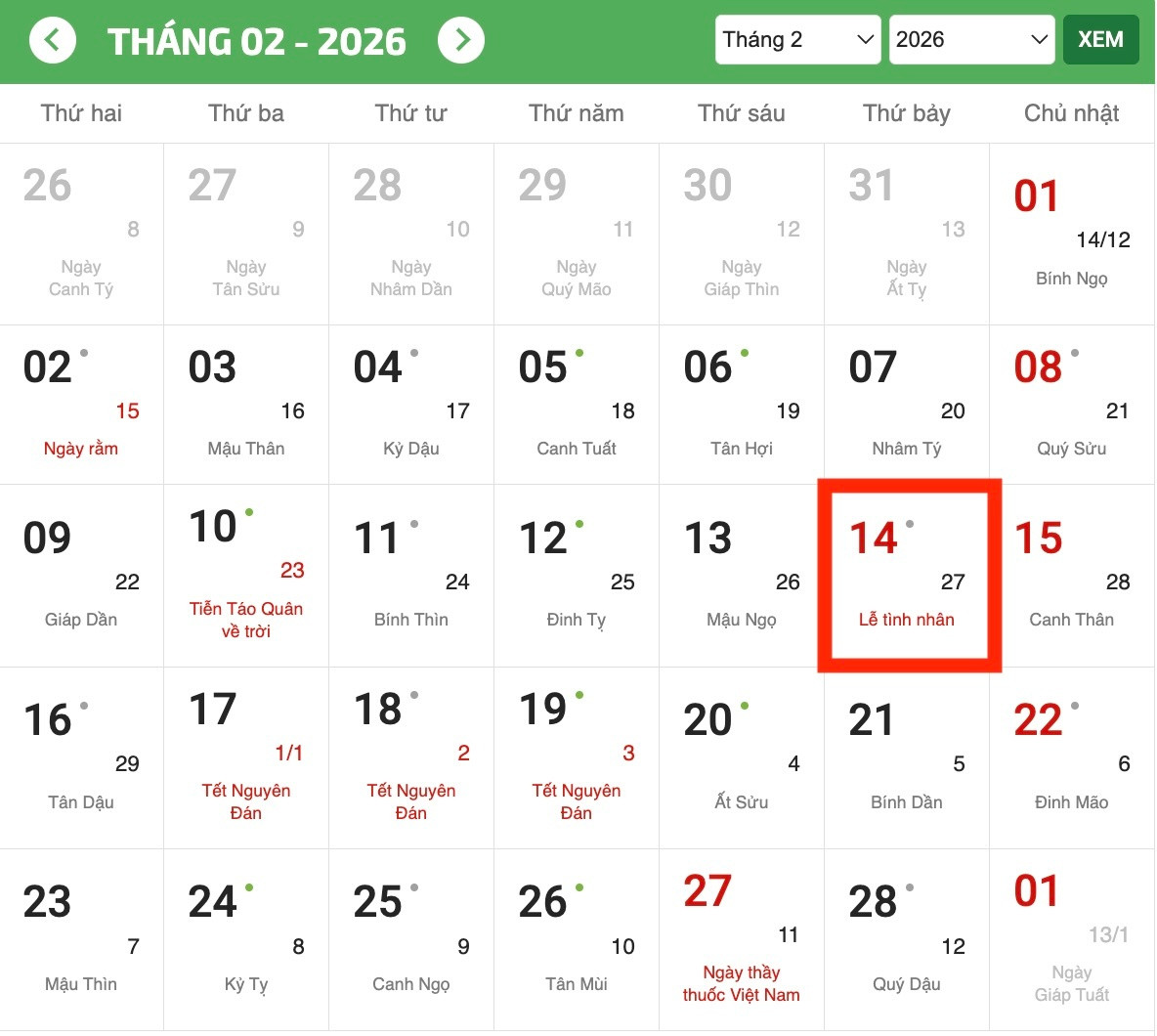 Ngày lễ Tình nhân Valentine 2026 diễn ra vào thứ Bảy. (Ảnh chụp màn hình)