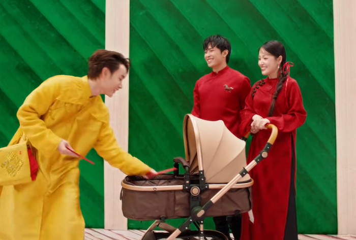 Giữa dàn sao đình đám góp mặt, một chi tiết bất ngờ lại trở thành tâm điểm bàn tán của cư dân mạng, đó chính là sự xuất hiện của vợ chồng Puka - Gin Tuấn Kiệt. Theo đó, cặp đôi ghi điểm với visual rạng rỡ, tràn đầy năng lượng đúng tinh thần ngày Tết. Tuy nhiên, điều khiến khán giả thích thú hơn cả là hình ảnh Puka và Gin Tuấn Kiệt đẩy xe nôi em bé, mang đến cảm giác ấm áp, hạnh phúc.
