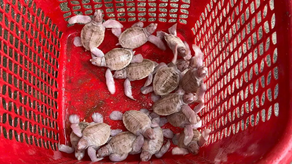 VQG Côn Đảo ghi nhận, từ đầu năm 2025 đến nay đã có khoảng 30 cá thể rùa bạch tạng nở. Trước 14 cá thể trên, các nhân viên bảo tồn ghi nhận 11 cá thể rùa bạch tạng nở trong một tổ trứng tại khu vực Hòn Tài; một số cá thể rùa bạch tạng nở tại khu vực Hòn Bảy Cảnh, Khu nghỉ dưỡng Six Senses…