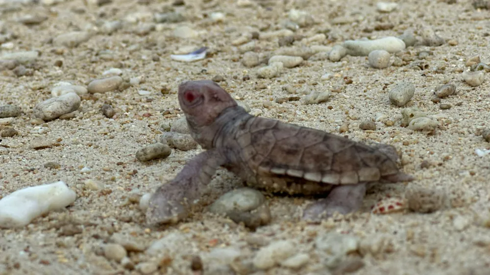 Đây là lần đầu tiên các nhân viên bảo tồn chứng kiến rùa bạch tạng có đôi mắt đỏ trong suốt và linh hoạt. Sau khi nở, các cá thể rùa bạch tạng khỏe mạnh đã được nhân viên bảo tồn thả về biển.