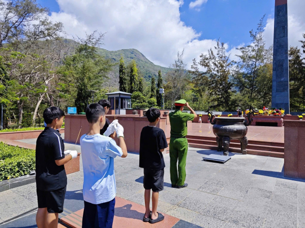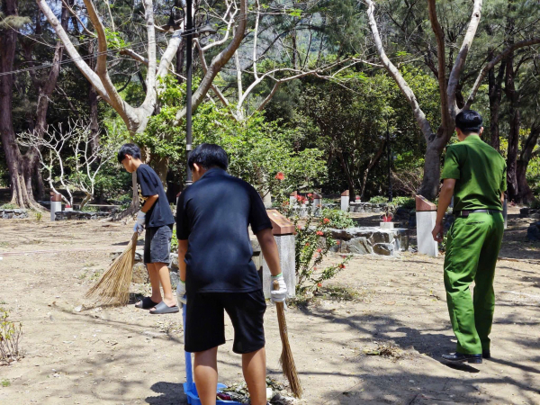 Công an Đặc khu Côn Đảo tổ chức cho các em học sinh chưa ngoan đến thắp hương tri ân và tham gia dọn vệ sinh tại Nghĩa trang Hàng Dương.