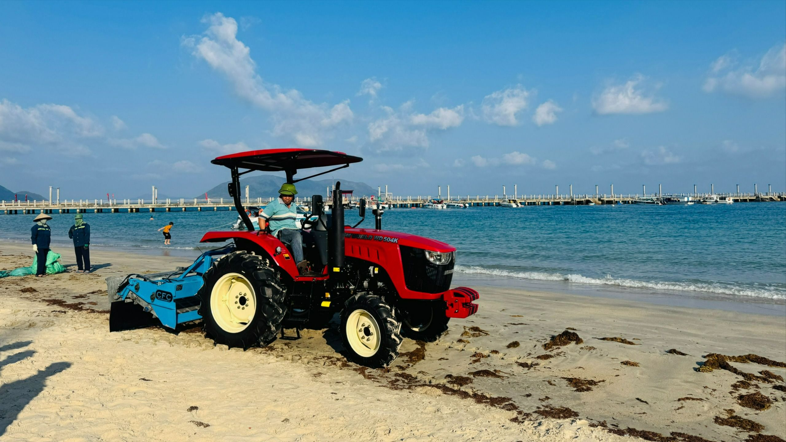 Máy sàng cát vận hành vệ sinh bãi biển An Hải, đặc khu Côn Đảo. Ảnh: MC